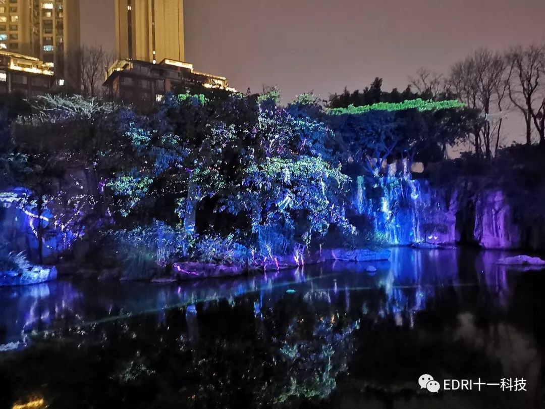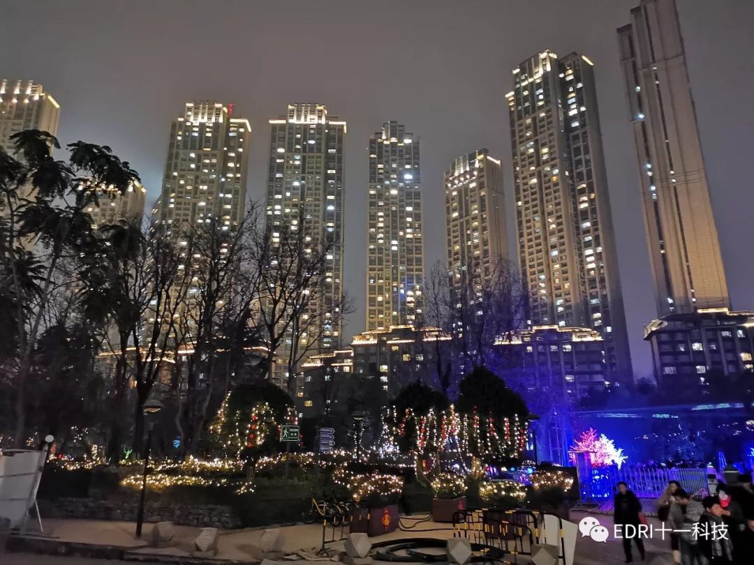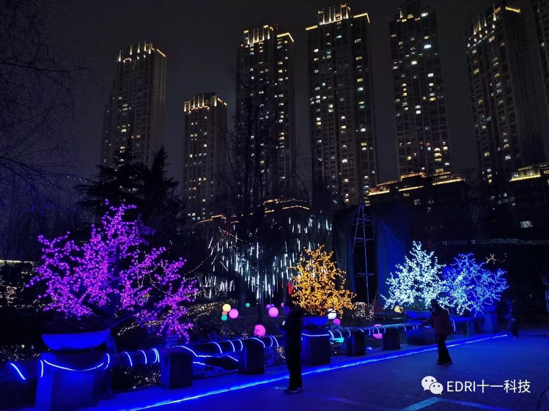 晚上,與太太漫步在成都御景灣小區(qū)外,為眼前的夜景所迷住,到處是流光溢彩,五彩繽紛,充滿著節(jié)日的氣氛。